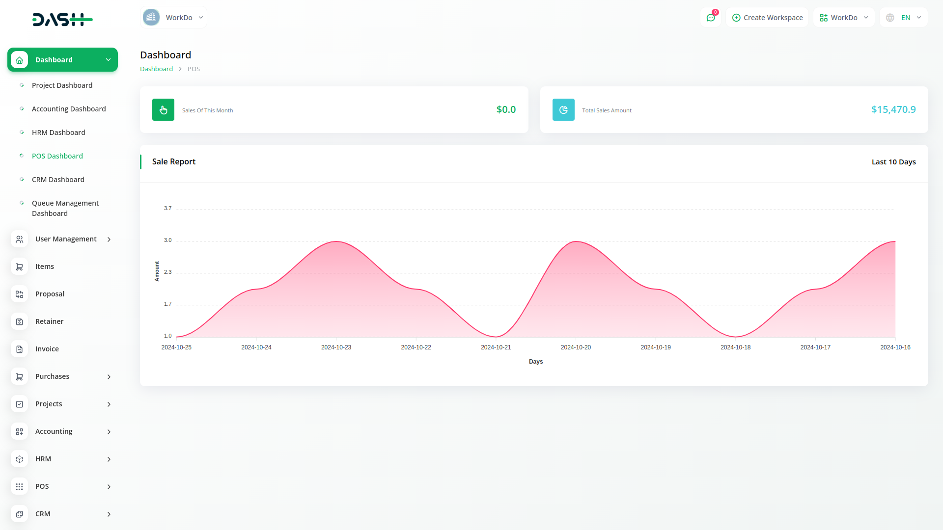 Welcome to the POS Module in Dash SaaS, your ultimate solution for streamlined sales management. Our platform offers a user-friendly dashboard where you can easily navigate through your sales activities. At the heart of the dashboard is a dynamic chart representing your sales reports, providing valuable insights into your business is performance. Whether you are a small retail store or a bustling restaurant, our POS Module empowers you to efficiently manage your sales process from start to finish.